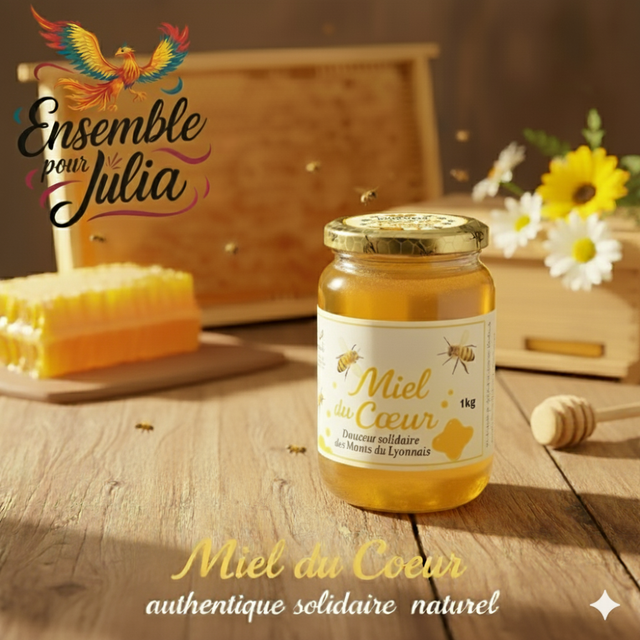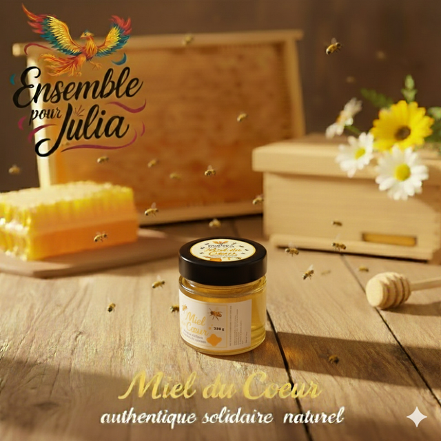 🌸 100% naturel, ce miel artisanal séduit par son parfum floral délicat et sa douceur incomparable. Mais ce qui le rend vraiment unique, c’est sa mission : chaque pot soutient directement l’association ENSEMBLE POUR JULIA, engagée pour l’autonomie et le bien-être de Julia 💪💛.